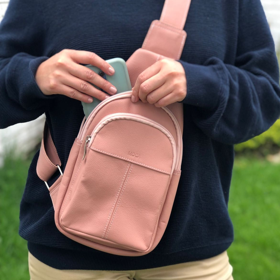 - Bolsillo exterior para celular y billetera