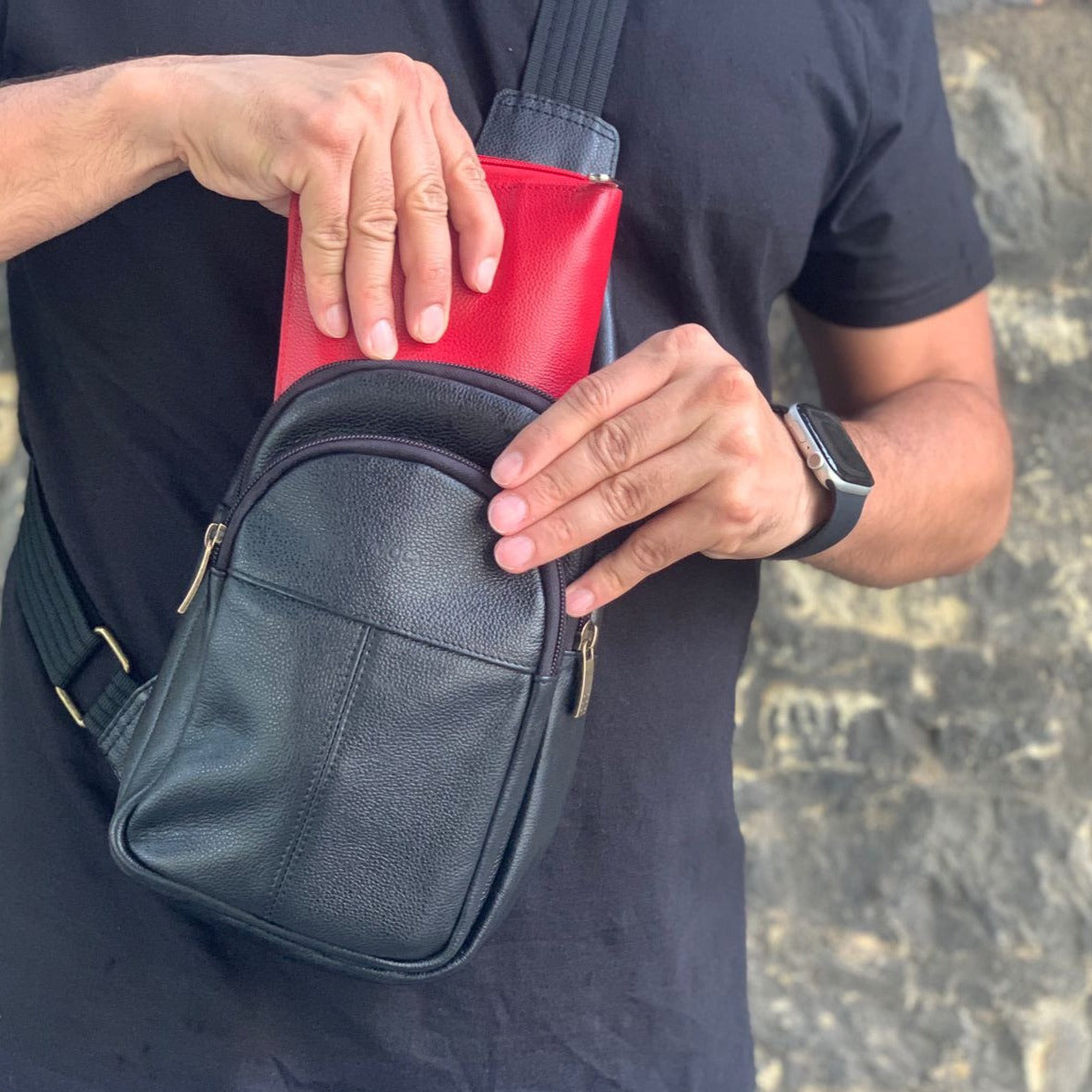 Manos Libres Karu es tu compañero ideal de viajes. Hecho en cuero genuino es perfecto para llevar tu celular, pasaporte y objetos personales con todo el estilo. Acompaña y resalta todos tus looks, dándoles un toque único.